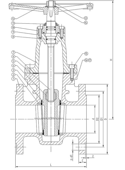 、平行式雙閘板閘閥外形尺寸和連接尺寸: