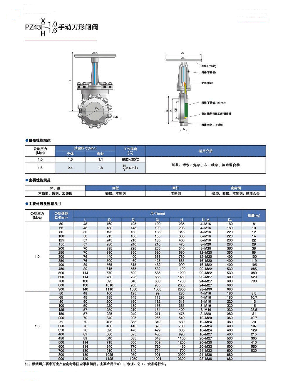 結(jié)構(gòu)特點:手動刀型閘閥具有結(jié)構(gòu)簡單緊湊、設計合理、輕型節(jié)材,密封可靠、操作輕便靈活、體積小、通道流暢、流阻小、重量輕、易安裝、易拆卸等優(yōu)點,可在工作壓力1.0MPa-1.6MPa,使用溫度-29-650℃情況下正常工作。刀型閘閥其閘板具有剪切功能,可刮除密封面上的粘著物,自動清除雜物,不銹鋼閘板可防止腐蝕引起的密封泄漏。本類閥門在管道中一般應當水平安裝。