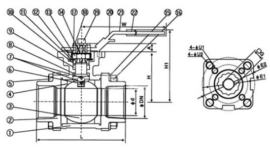 Q11F二片式高平臺球閥結(jié)構(gòu)圖