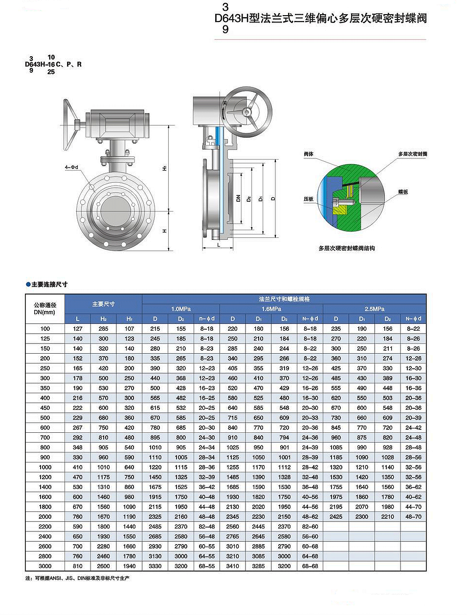 D343H-16C/P/R法蘭三偏心多層次硬密封蝶閥